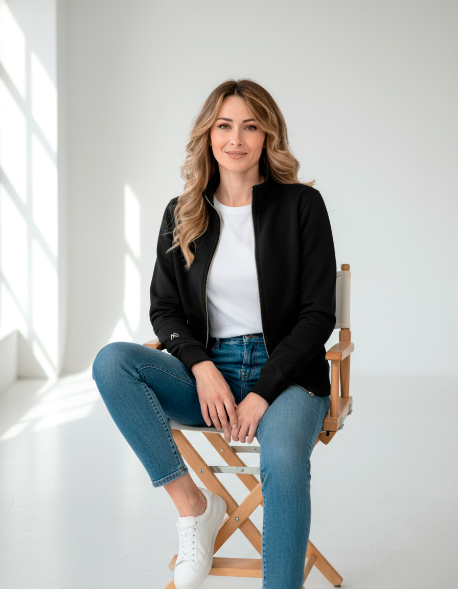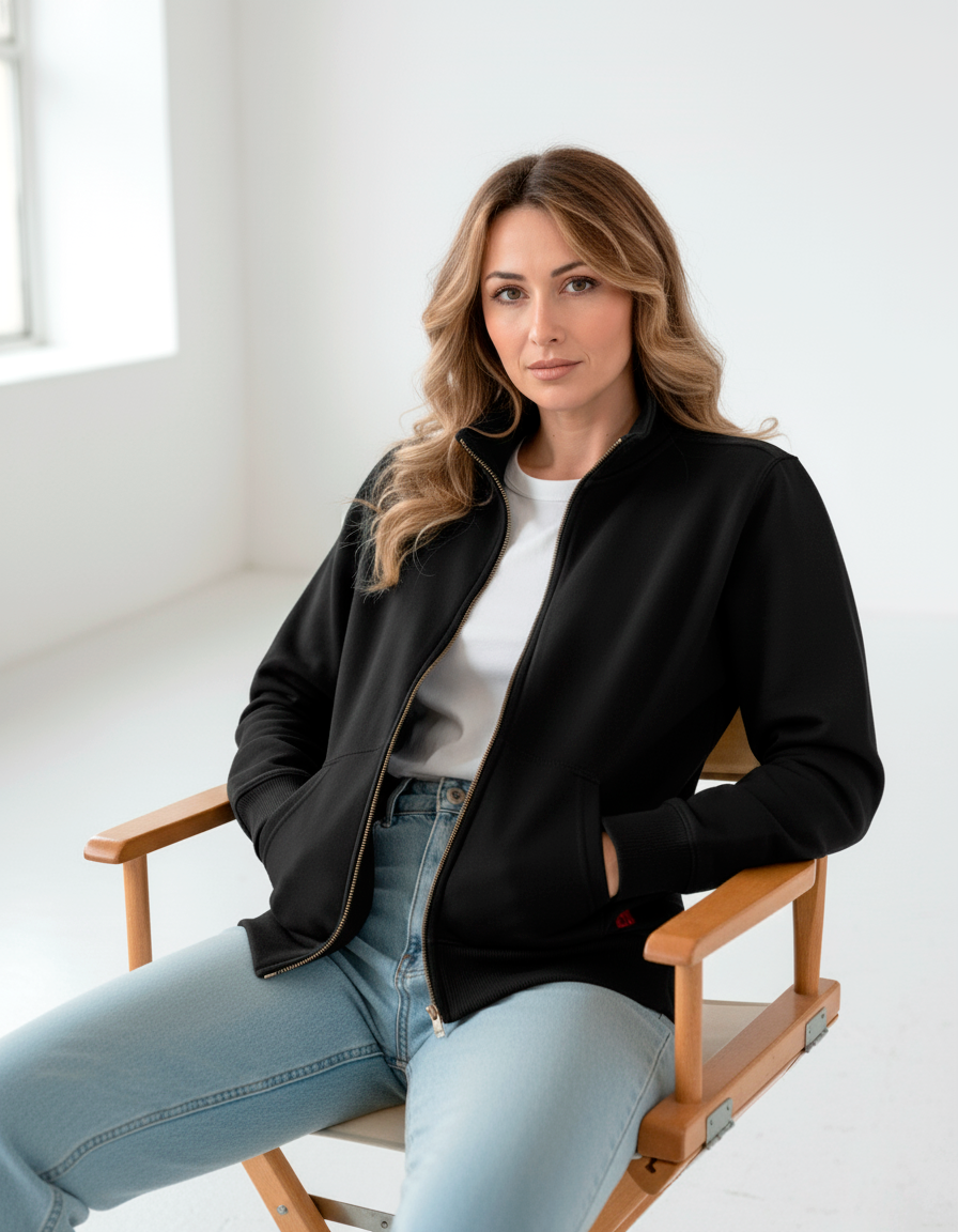 Buzo abierto con cremallera y cuello alto, elaborado en suave Algodón perchado para acompañarte en los días fríos. Tiene un bolsillo tipo canguro al frente, práctico y cómodo. Úsalo con leggings o jogger para ir al gym, o con jeans para un look casual y relajado durante el día.
