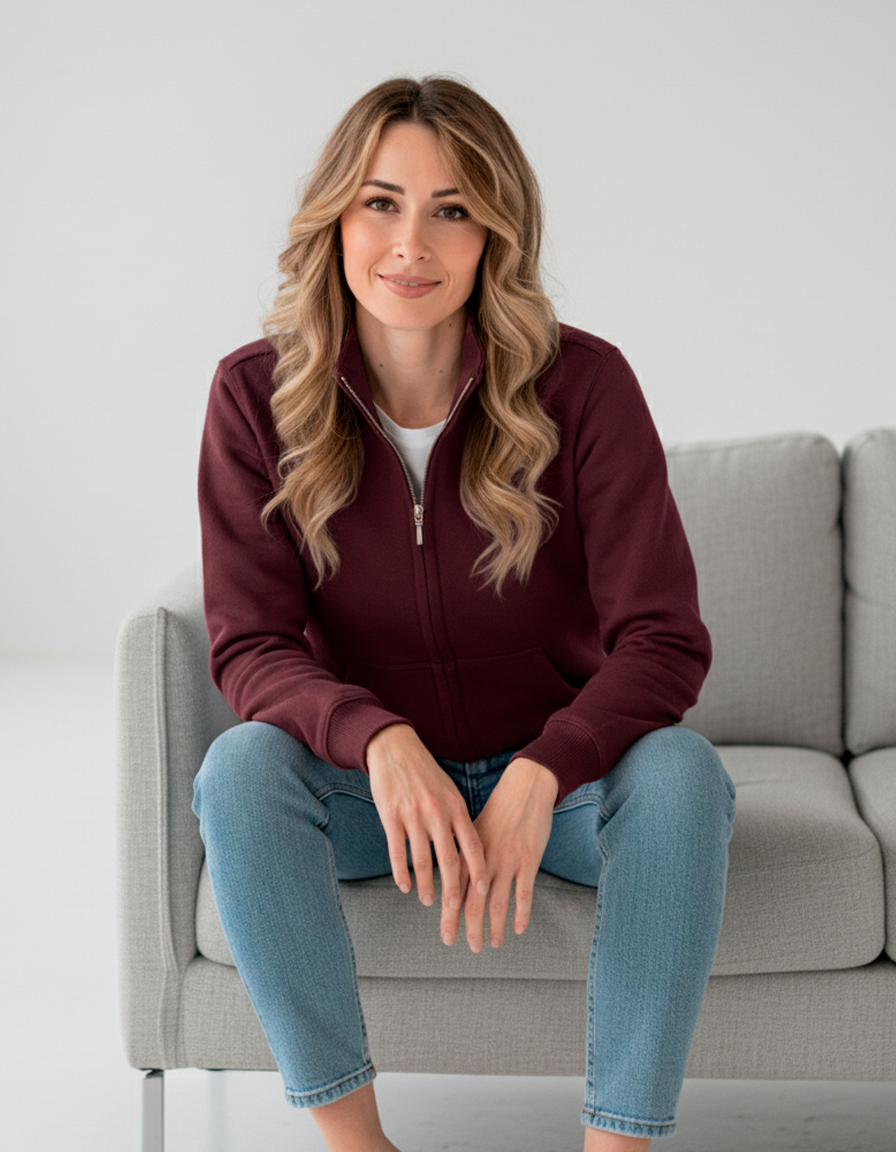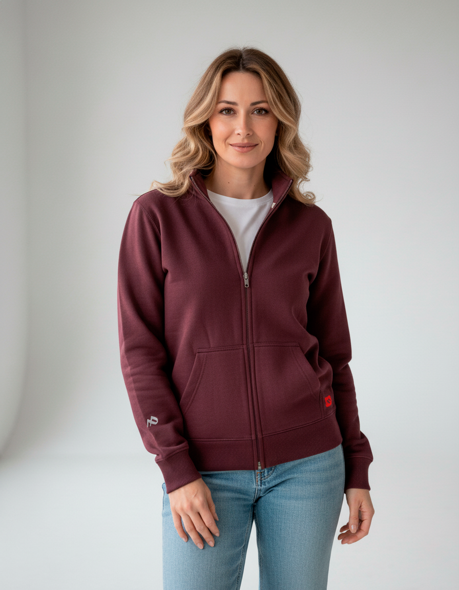 Buzo abierto sin capota mujer Vinotinto Burdeos
