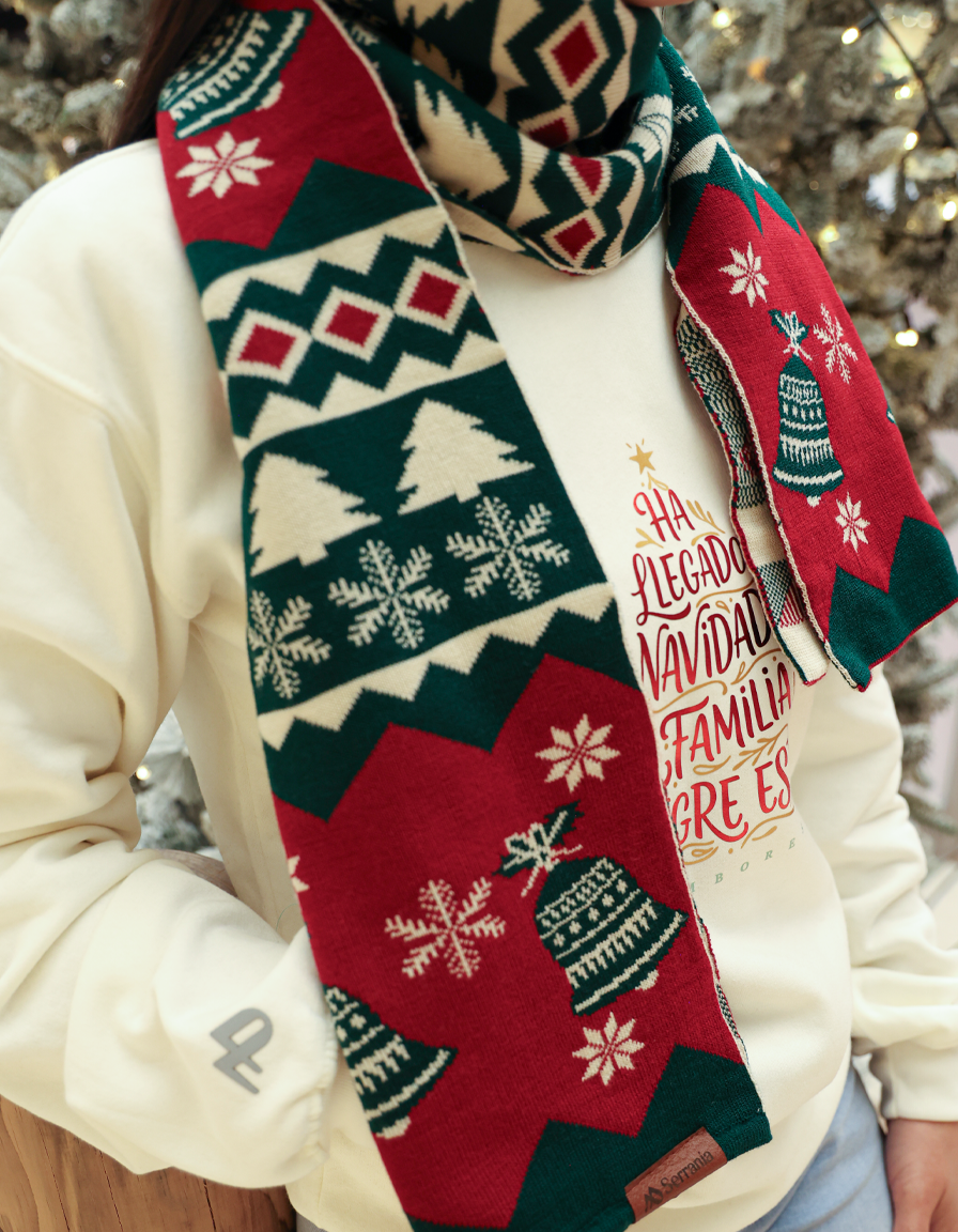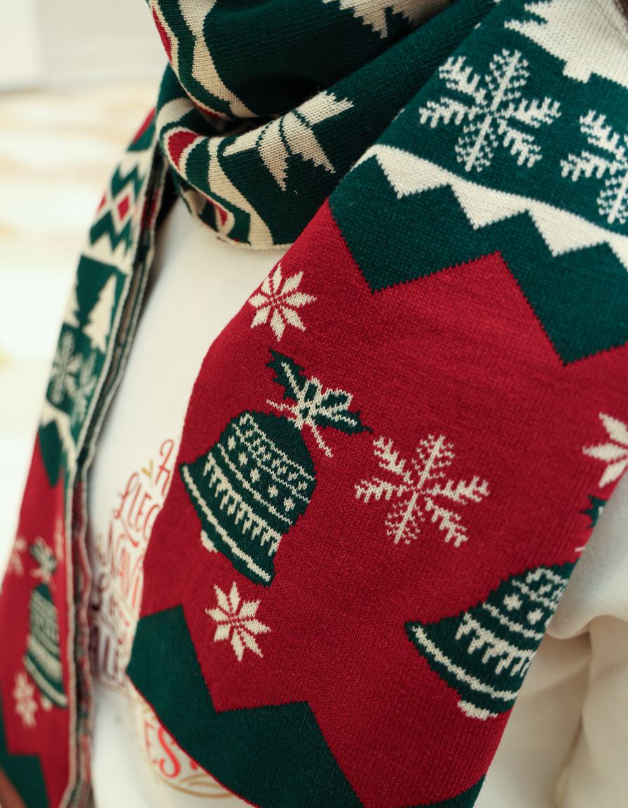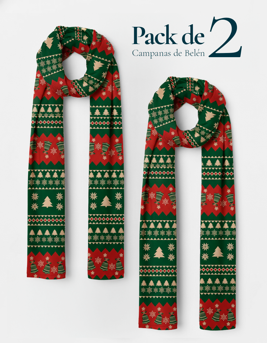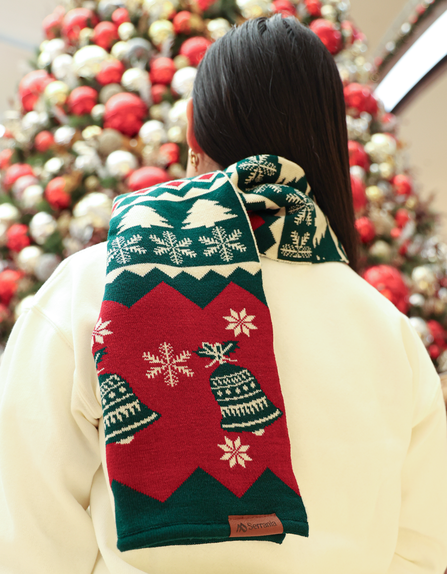 Inspiradas en los símbolos más entrañables de la Navidad —las campanas, los renos, los abetos, las estrellas y los hogares iluminados—, estas bufandas capturan la esencia de la época: unión, celebración y nostalgia.