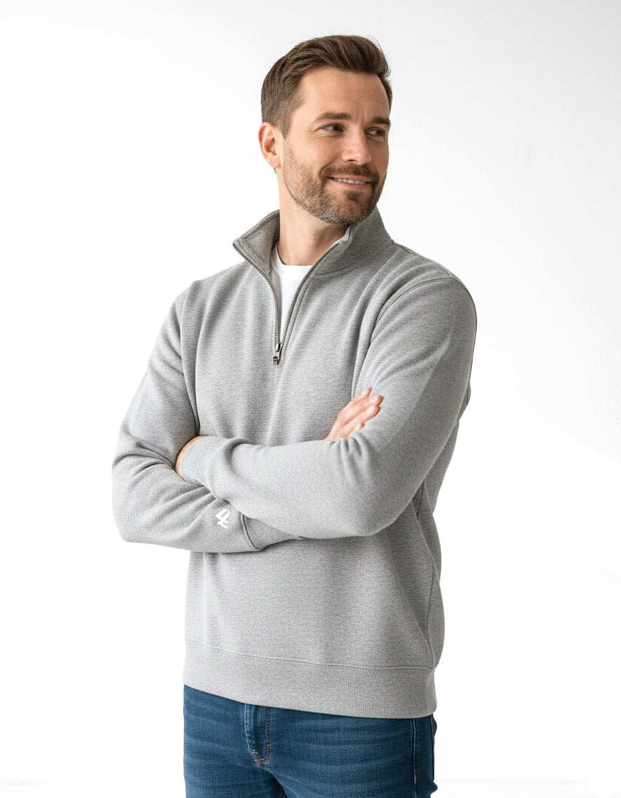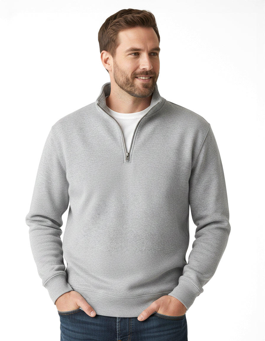 Buzo de cuello alto elaborado en sueva fleece perchado, con cremallera hasta el pecho. Tiene un regular fit clásico, muy en tendencia, ideal para llevar con una camisa debajo y lograr un look casual.