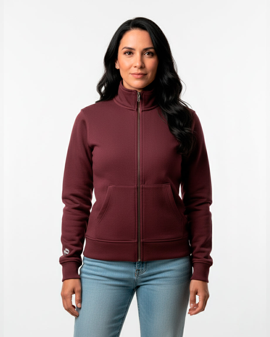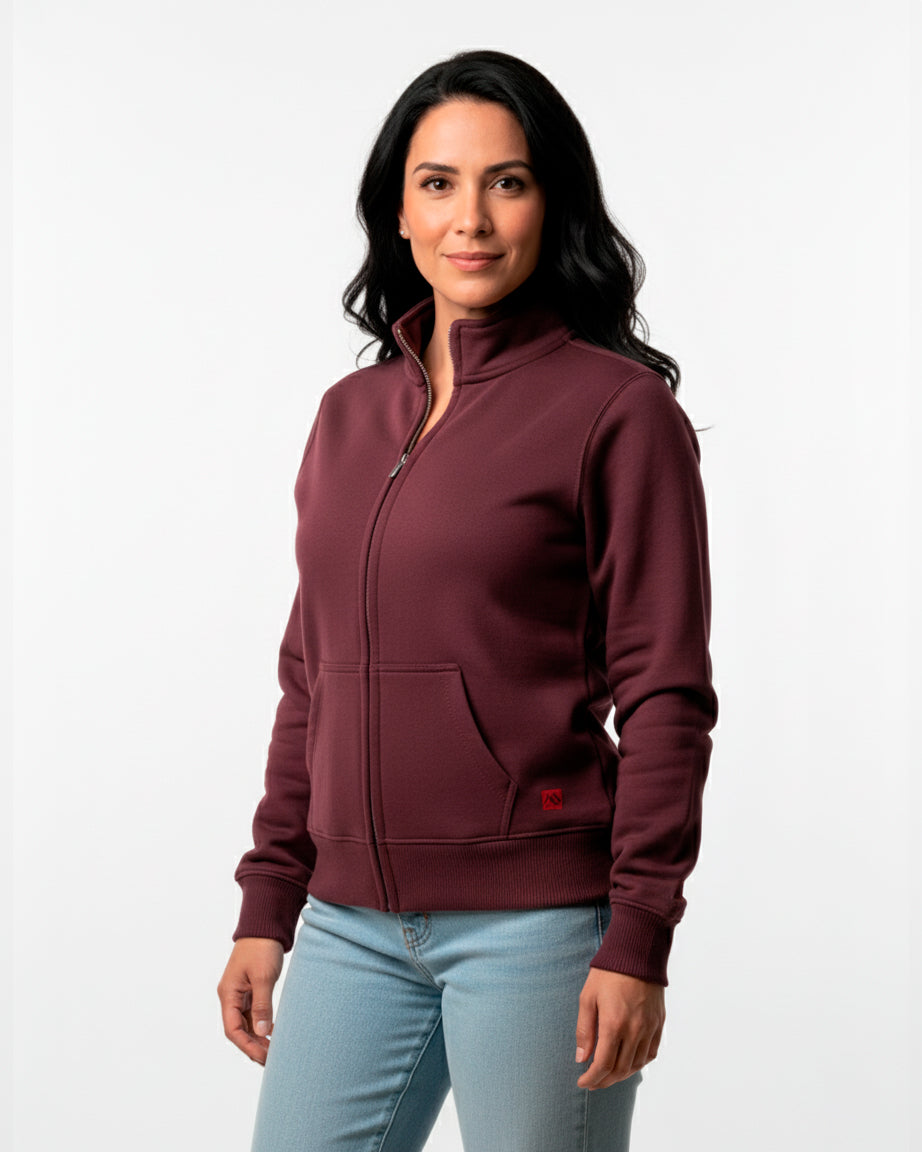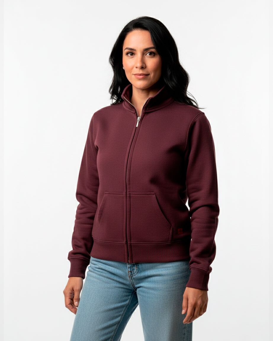 Buzo abierto sin capota mujer Vinotinto Burdeos