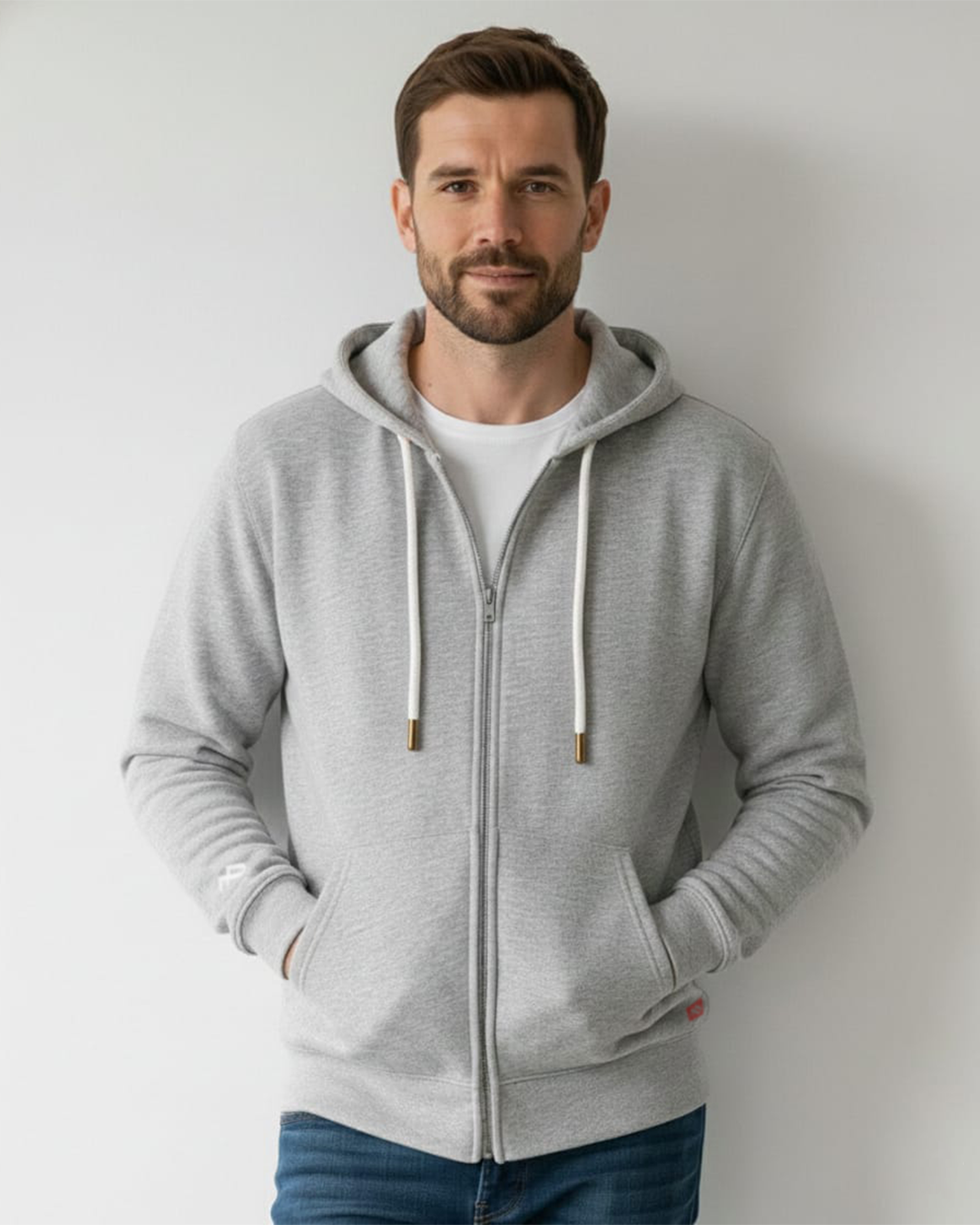 Buzo abierto con capota Hombre Gris Luna