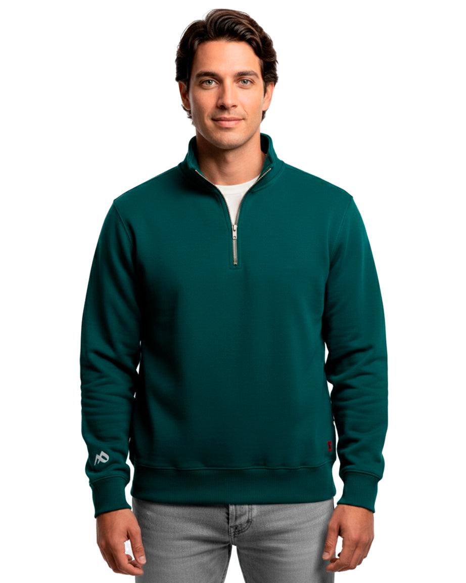 Buzo de cuello alto elaborado en sueva fleece perchado, con cremallera hasta el pecho. Tiene un fit clásico, muy en tendencia, ideal para llevar con una camisa debajo y lograr un look casual.